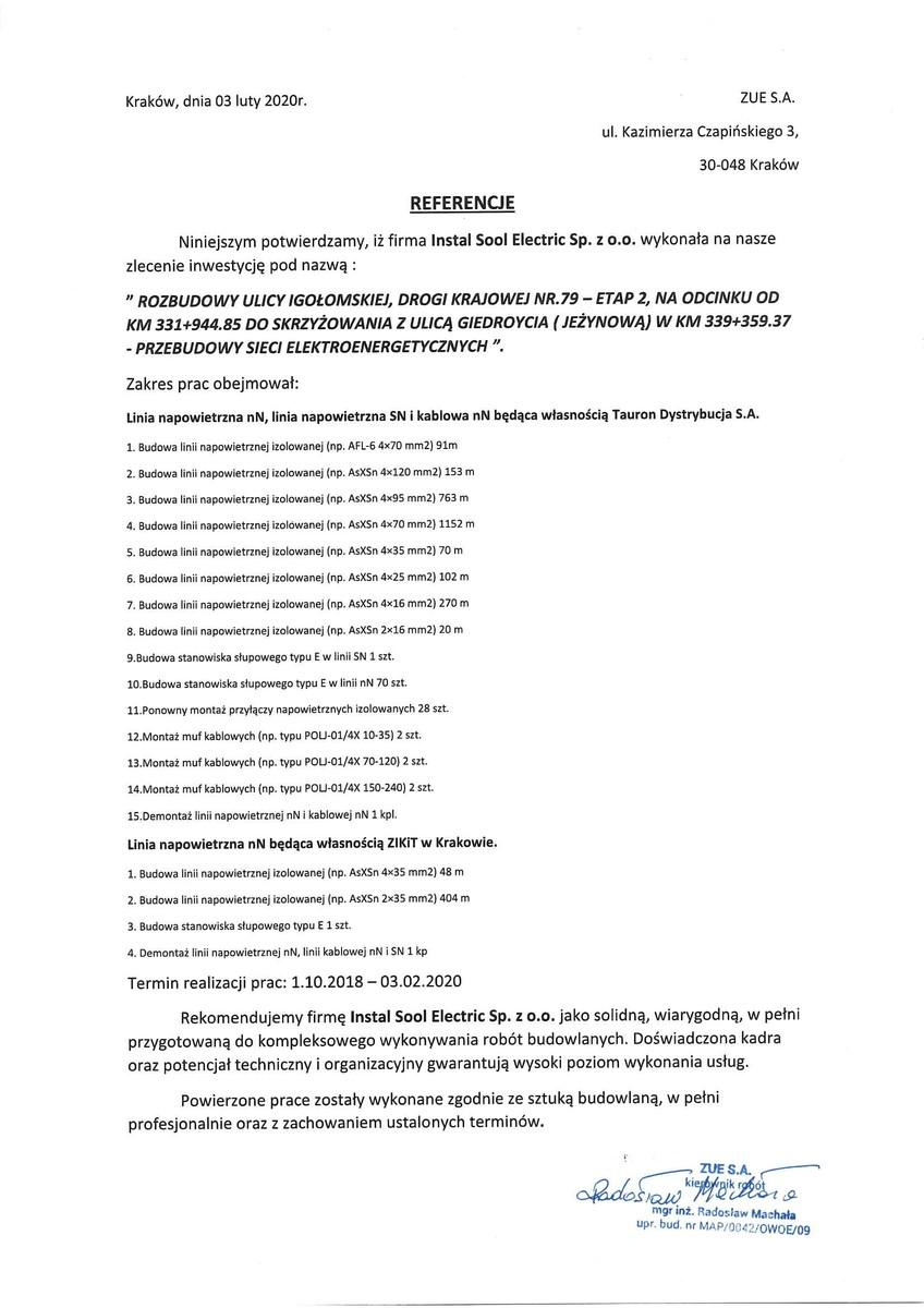 Referencje Przedsiębiorstwo Instal Sool Electric Sp. z o.o. zachęca do zapoznania się z wcześniejszymi efektami swojej pracy wykonanymi dla firm oraz klientów indywidualnych.